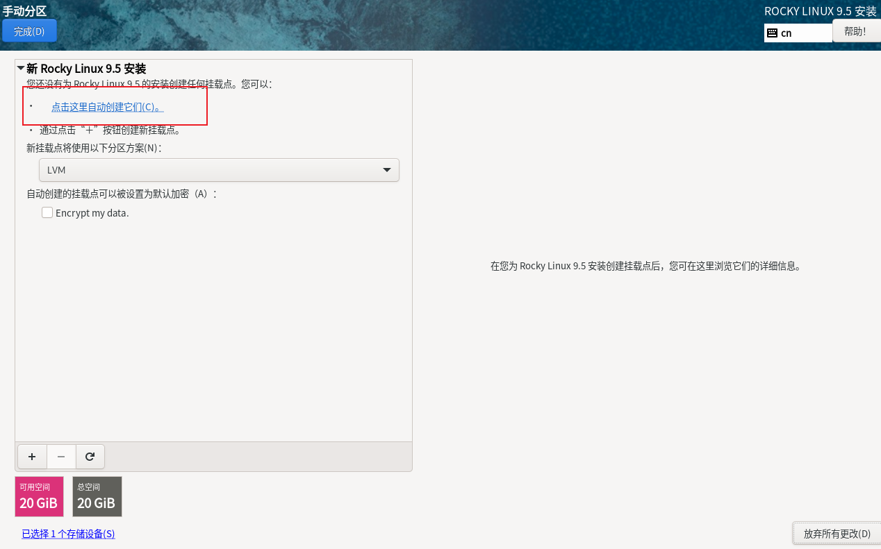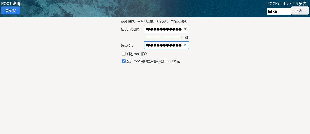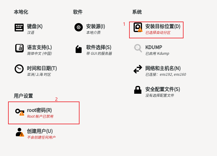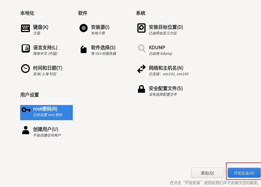 rocky linux9安装 admin 2025-04-24 15:16 357 人阅读 0 条评论 选择安装 安装 点击完成 先设置硬盘分区 保持默认,点击完成 接受更改 启用root账户 开始安装 安装完成,选择重启 本文地址:https://www.liuchunjie.top/?id=795 版权声明:本文为原创文章,版权归 admin 所有,欢迎分享本文,转载请保留出处! 点赞 分享: PREVIOUS:vs2022离线包下载 NEXT:使用nmtui设置静态路由 文章导航