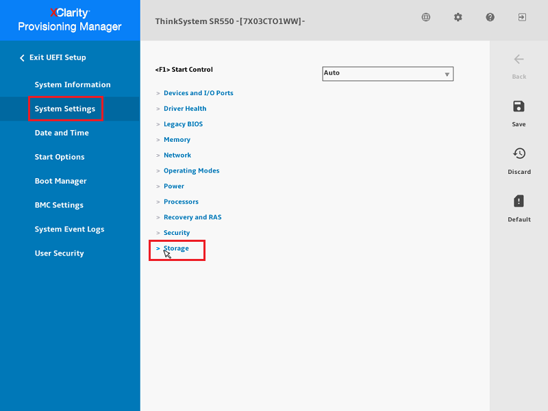 由于ThinkSystem系列服务器默认按F1键进入LXPM图形界面而非传统UEFI Setup文字界面,要进入文字界面需要先修改F1启动模式。