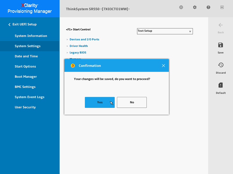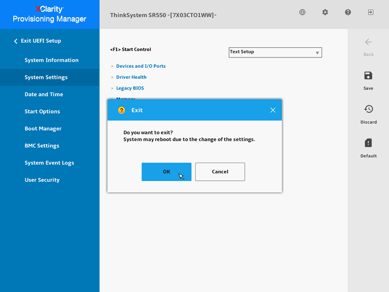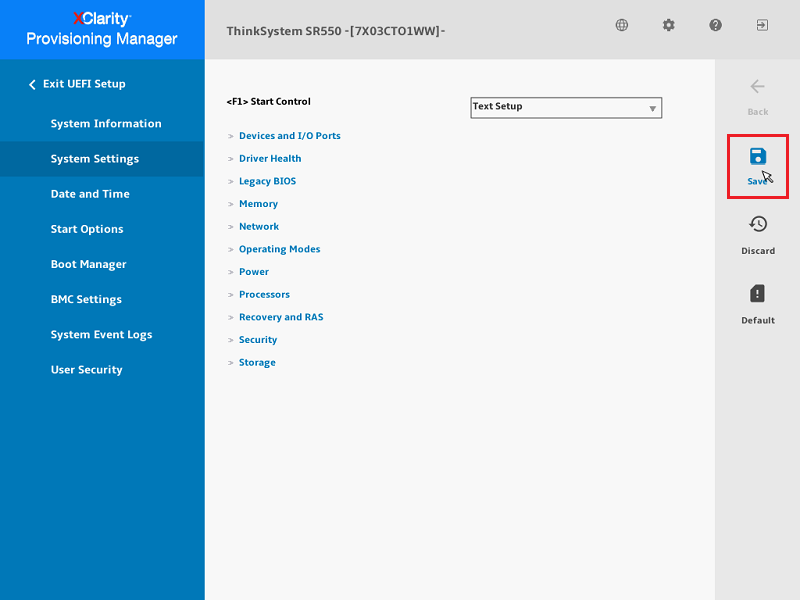 注意:ThinkSystem系列服务器默认按F1键进入LXPM图形界面而非传统UEFI Setup文字界面,除非有修改F1启动模式或者LXPM出现异常。