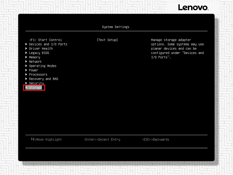启动服务器,在出现ThinkSystem logo的时候按F1键进入UEFI Setup文字界面。