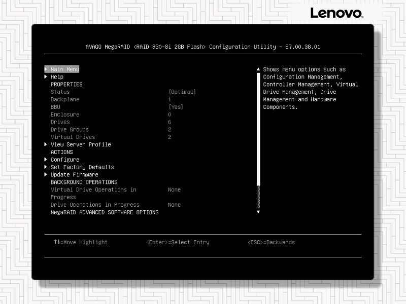 接下来即进入UEFI HII SAS RAID阵列配置界面,下图为Dashboard界面。