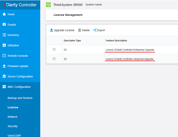 "Lenovo XClarity Controller Advanced Upgrade"提供远程控制台功能;