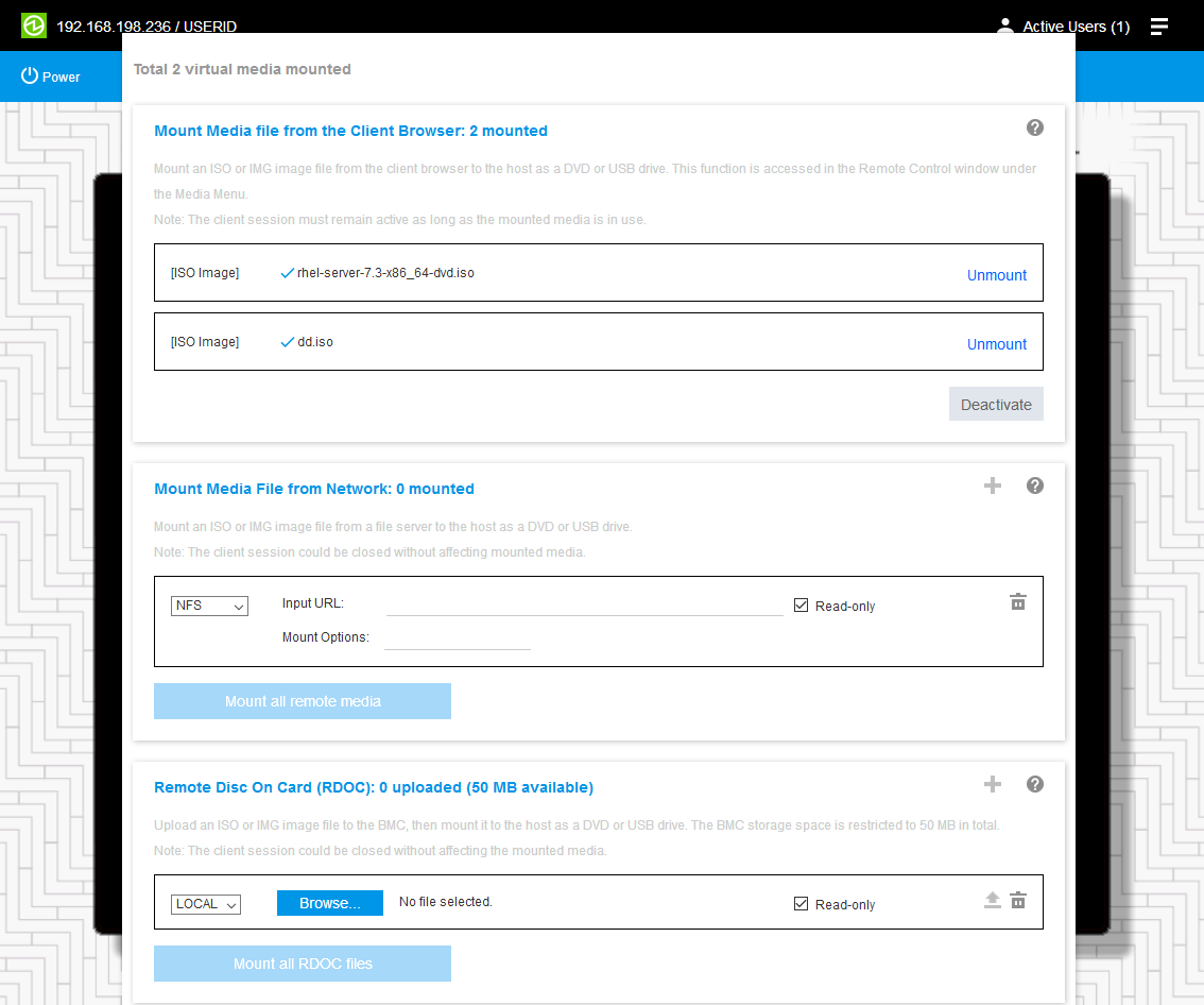 如果要取消挂载,则点击所选镜像右侧的"Unmount"或者"Deactive"。