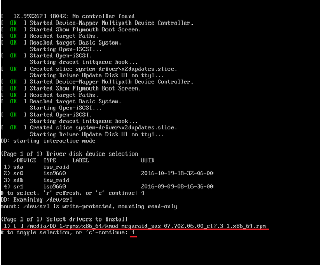 选择要加载的驱动程序,即"1)" SAS驱动,输入数字"1";
