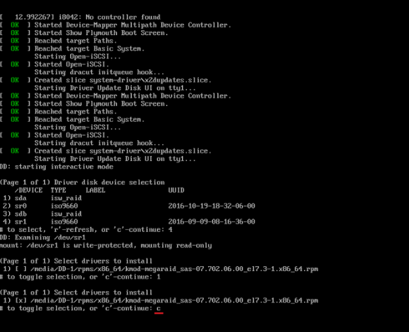 所需驱动已经被选中"1) [x]",输入字母"C"继续;