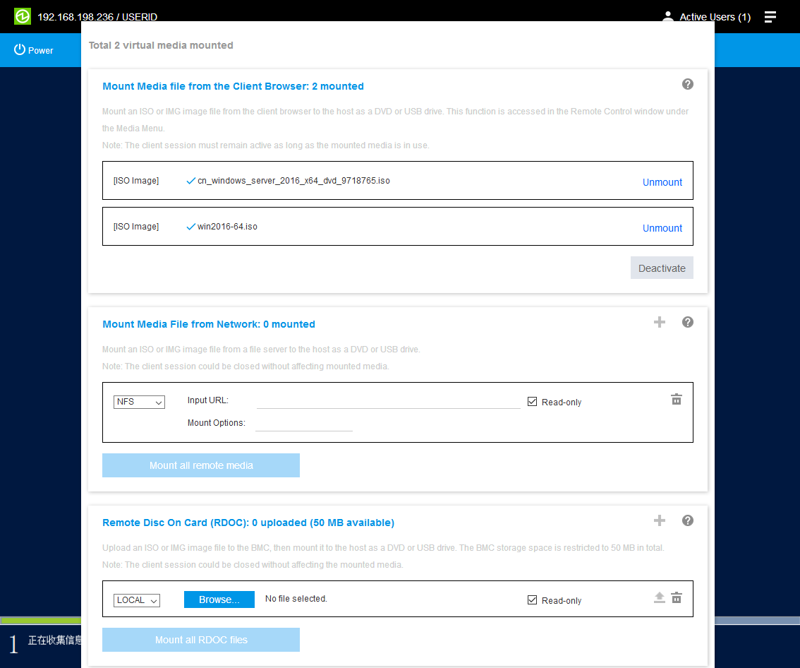 首先要确认当前服务器是否已激活远程控制台及远程挂载iso镜像的功能。